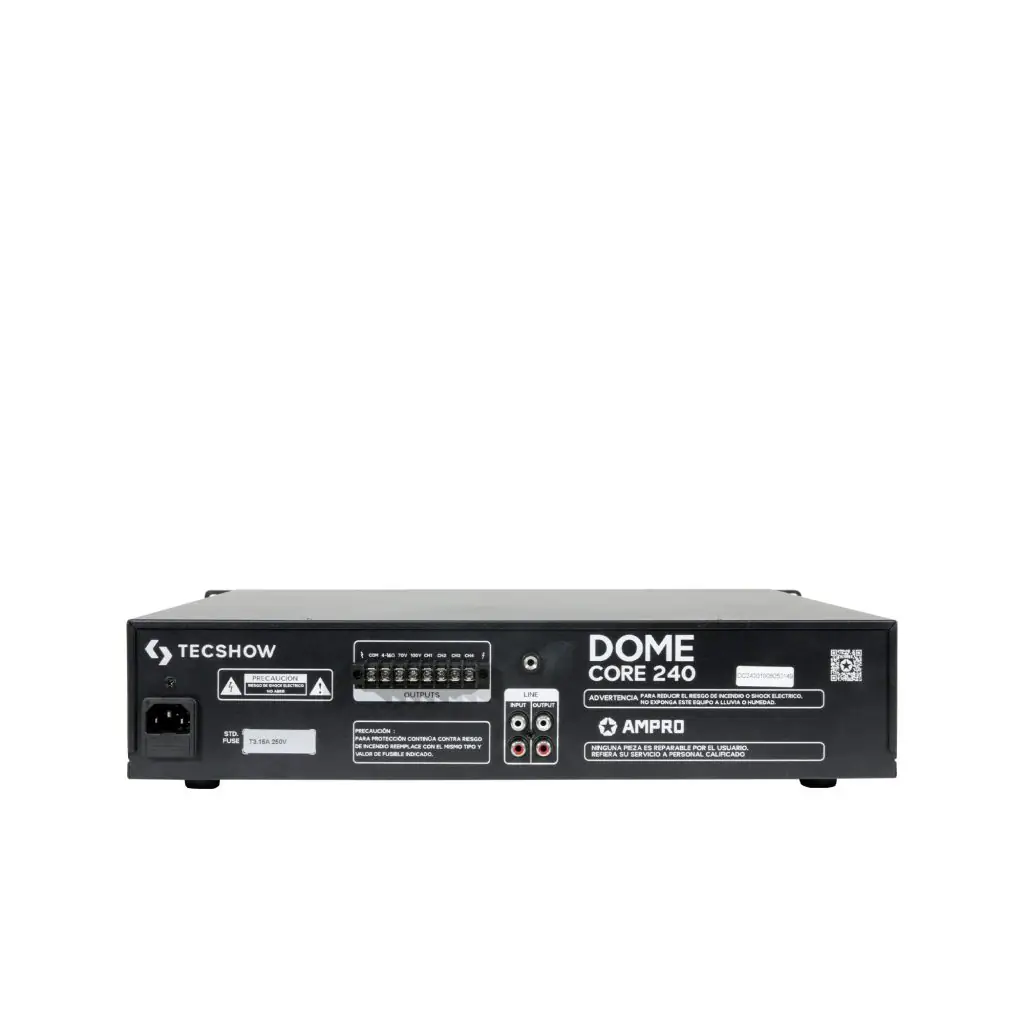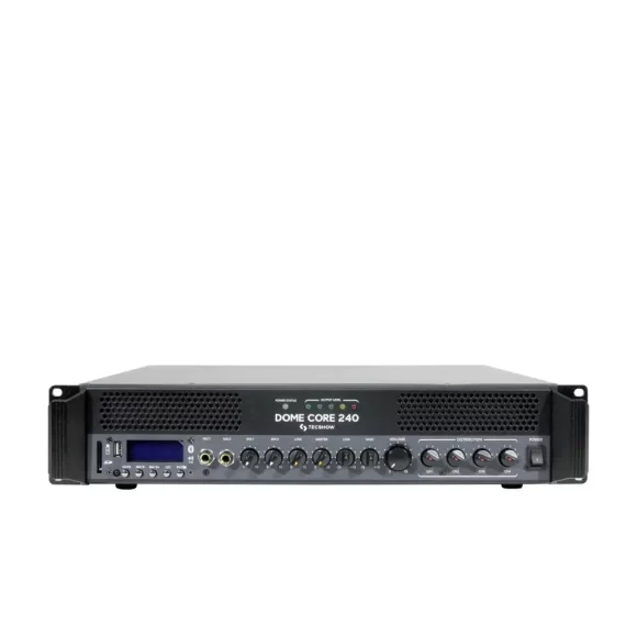 El amplificador Dome Core 240 le permite al usuario conectar múltiples parlantes y obtener hasta 4 zonas de control independiente. El equipo cuenta con ecualizador de 2 bandas, dos entradas de micrófono y 1 entrada/salida de línea para cualquier accesorio que quieras conectar a la potencia. A su vez, te permite reproducir una gran variedad de contenido gracias a sus slots SD y USB, como así también por intermedio de su antena FM y su conectividad Bluetooth. Dome Core 240 , la opción ideal para simplificar tus instalaciones.