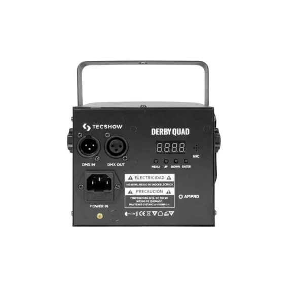 Derby Quad es un efecto LED derby que cuenta con 2 LEDs 4-en-1 de 10W. Su tecnología LED de cuatro colores permite una mezcla suave sin sombras multicolor, logrando innumerable cantidad de colores profundamente saturados. Derby Quad posee 4 modos de operación (DMX, audioritmico, maestro/esclavo, y auto).