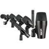 Incluye micrófonos especializados para distintas funciones: el micrófono de bombo, de tipo dinámico, está optimizado para reforzar las frecuencias graves, entregando un golpe profundo y contundente. El micrófono de tambor ofrece una reproducción clara y con cuerpo, perfecta para la caja. El micrófono de tom garantiza una captación precisa incluso en espacios reducidos, y el micrófono overhead, de tipo condensador, se destaca tanto en grabaciones detalladas como en presentaciones en vivo, capturando el ambiente y los platillos con gran fidelidad.